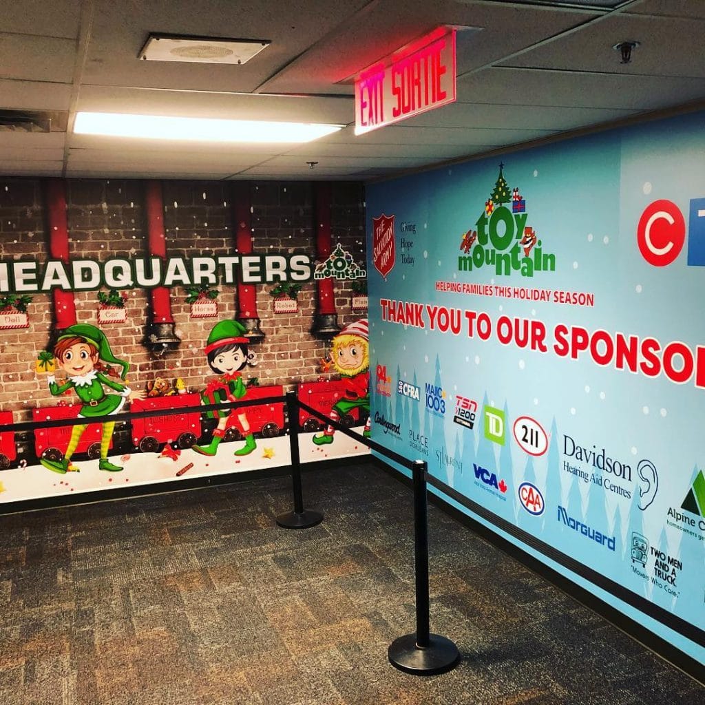 Brampton, ON, Canada, December 19, 2018: K6 Media has wrapped up a project for the Salvation Army’s Toy Mountain campaign in Ottawa, Canada, with banners, murals and labels printed onto Drytac ReTac Smooth 150.
