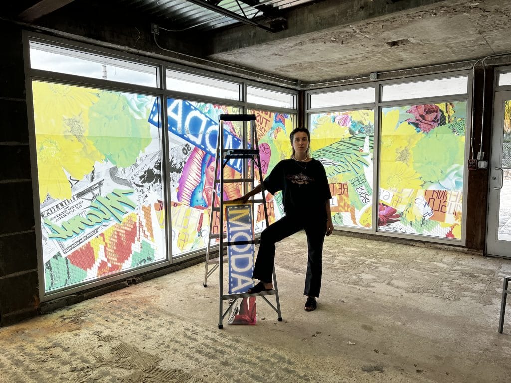 Produced for the ‘Constructing Identities’ MUSA exhibition in Miami, Florida, the window mural – which was installed in Spring 2022 was designed to recreate a Latinx visual universe, exploring gender identity, religious iconography and Latin American pop art. Latinx is gender-neutral term for people of Latin American cultural or ethnic identity in the US.