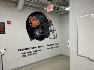 The Ohio Floor Company used Drytac Polar Grip to produce a large-scale American football helmet graphic for the boys’ locker