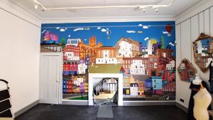 The large-format print business used Drytac Polar Premium Air with Interlam Pro Emerytex laminate to produce a series of interior graphics to brighten up a stairway with colourful images of the local area.
